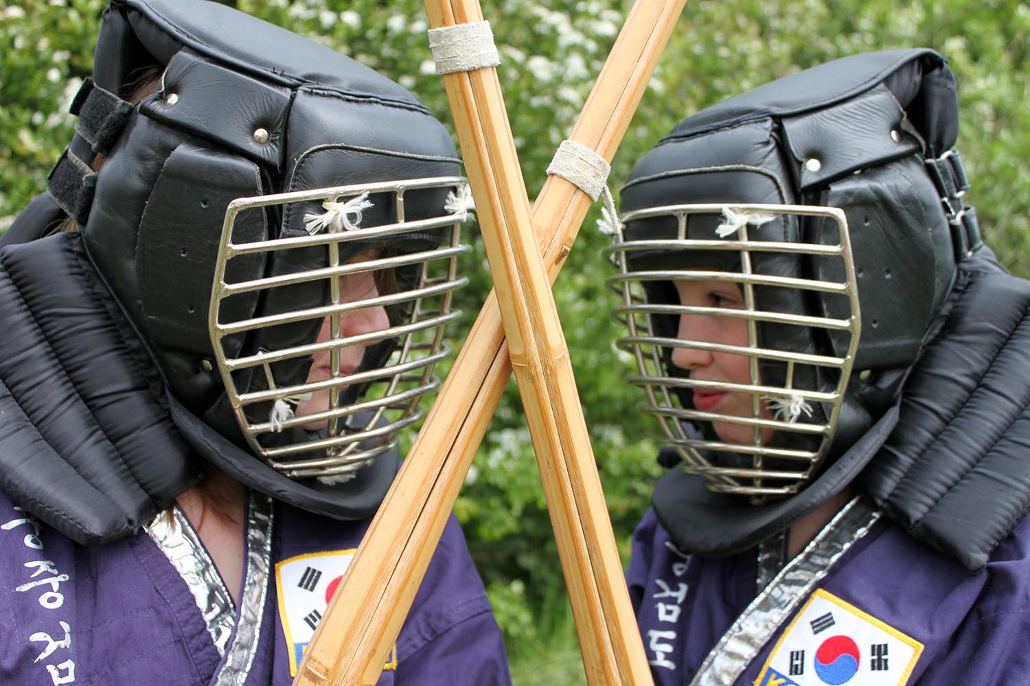 Erlernen Sie den tradionellen koreanischen Schwertkampf mit einer speziellen Trainingswaffe, wobei effektive Kampftechniken „Mann gegen Mann“ ausgeführt werden. -